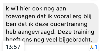 Besloten ouder-groep -6 maanden support van mij in een online community voor vragen, ervaringen en opvolging na de training.